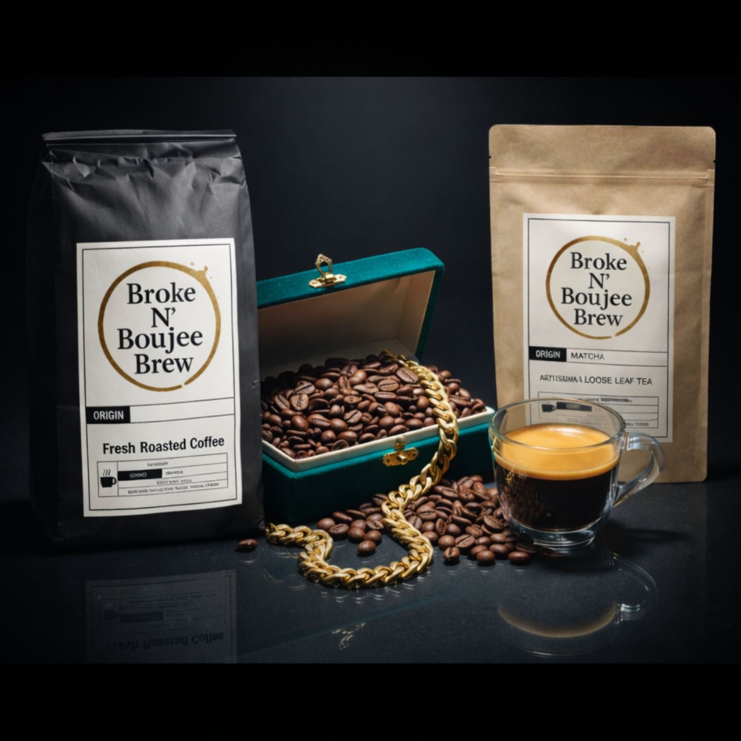 Welcome to Broke N Boujee Coffee, where big flavor meets small-budget energy. We’re here for the dreamers, the grinders, the main characters, and the glam-on-a-budget crowd who want their coffee strong, their vibe expensive, and their wallet… surviving (barely, but still cute).